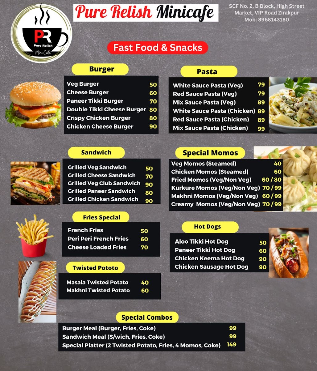 Discover a hidden gem in the bustling city of Zirakpur at Pure Relish MiniCafe. Nestled in SCF No. 2, Ground Floor, B-Block on VIP Road, this delightful cafe offers a serene escape from the hustle and bustle of daily life, making it the perfect spot for food lovers and relaxation enthusiasts alike.